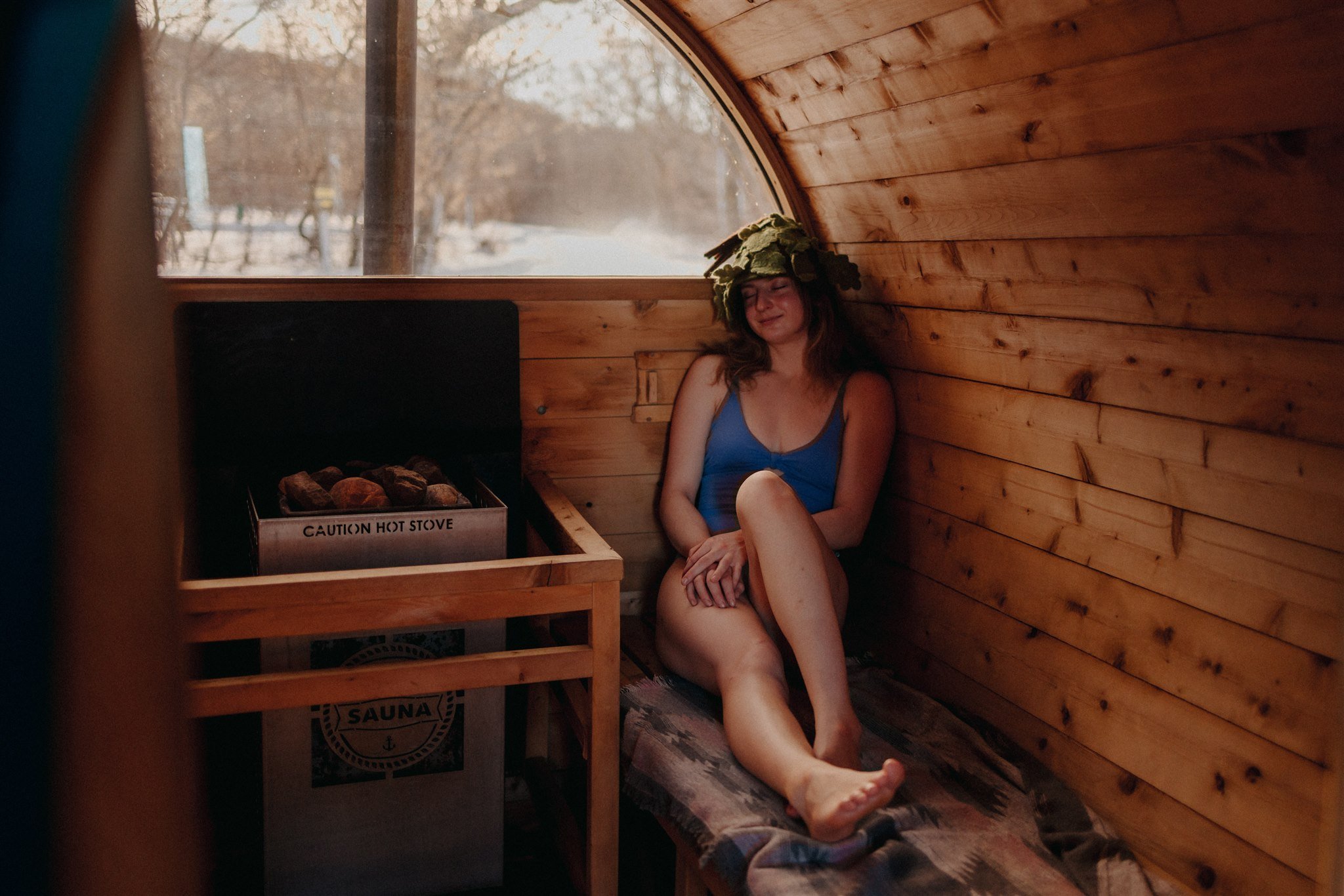 Following the meditation, you’ll relax and unwind in the wood-burning barrel sauna!